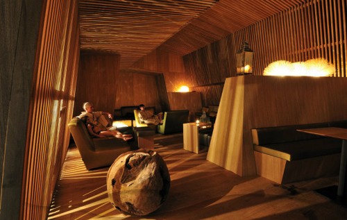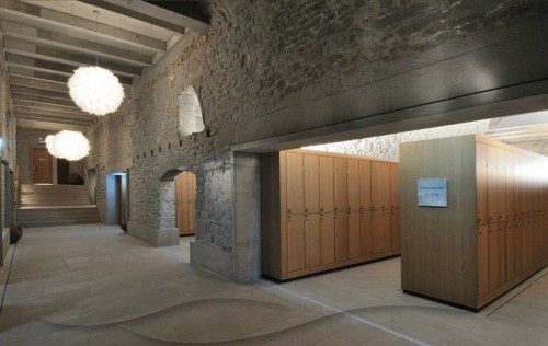 Các bể ngâm bia bằng gỗ dưới tầng hầm được phục chế thành các bể tắm có nhiệt độ khác nhau, bên dưới khoảng trần vòm bằng đá được giữ nguyên trạng của tòa nhà cũ. Các gian hầm được sửa thành phòng tắm phụ, phòng xông hơi, phòng thư giãn. Bên trên chúng, một loạt cấu trúc bê tông mới được dựng lên, với một dòng nước trên sân thượng. Đá và gỗ, hai thứ chất liệu đã được dùng để chế nên các bể chứa bia (giờ là bể tắm nước khoáng), tiếp tục được ứng dụng vào công trình mới, theo một phong cách đương đại hơn. Các mảng khối góc cạnh của cấu trúc mới mang vẻ tương phản nhẹ nhàng với phần nhà cũ, và đóng vai trò chủ chốt ở phần sân thượng.